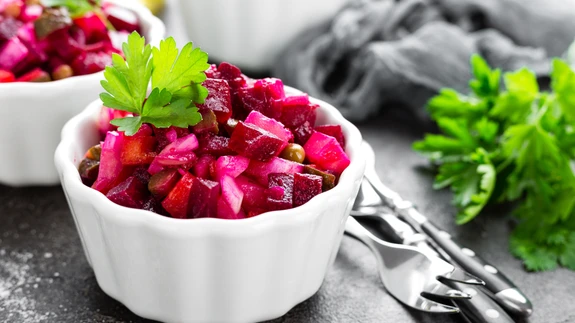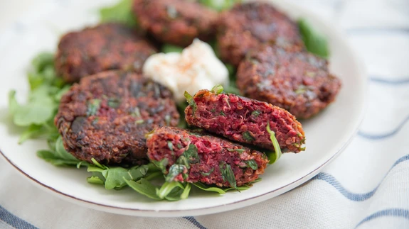 Sega kokku kõik kuivad ained. Mõõda hapukoor, keedetud hirss, riivitud peet, õli ja suhkur köögikombaini ning töötle kohevaks. Sega kokku kuivade ainetega.