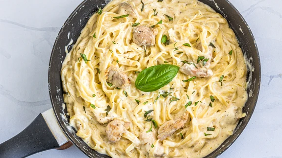 Sega parmesanist, hapukoorest, sidrunimahlast ja mustast piprast kaste ja paku piruka juurde.