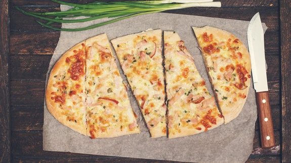 Rulli tainas jahuga ülepuistatud küpsetuspaberil 26x36 suuruseks plaadiks. Tõsta koos paberiga ahjuplaadile.