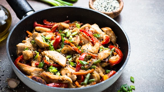 Pane kõik ained ahjupotti, kalla juurde vesi, maitsesta sojakastme ja puljongikuubikuga. Kalla potti tükeldades tekkinud apelsini ja ananassimahl. Nirista peale õli.