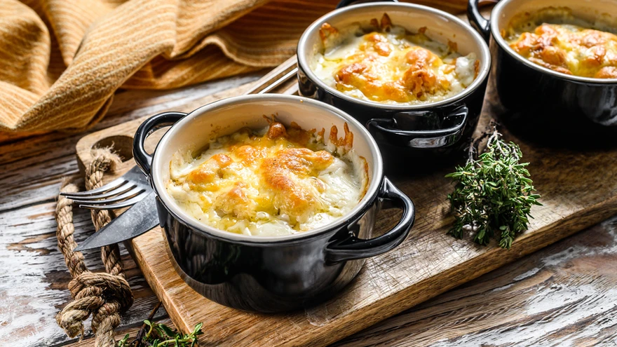 Võta potid ahjust ja serveeri toit kuumakindlal alusel koos potiga.