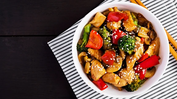 Kuumuta poti põhjas õli ja kuumuta porrut. Lisa neerutükid, tomatid, paprika ja seened ning kuumuta. Maitsesta sojakastme, soola ja pipraga. Hauta nõrgal kuumusel 20 minutit.